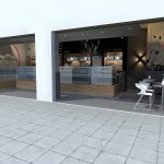 Se llevó a cabo la instalación de una cafetería con varios ambientes: pequeños rincones con encanto, taburetes mirando a la calle y bancos cómodos. El mobiliario y la iluminación fueron seleccionados cuidadosamente para crear un ambiente cálido y atractivo. La carta incluye zumos naturales, sándwiches, hamburguesas y café Arábica.